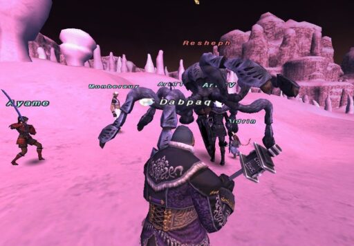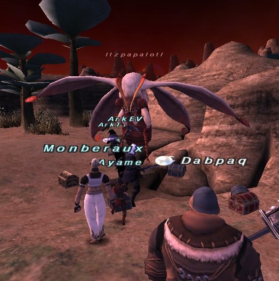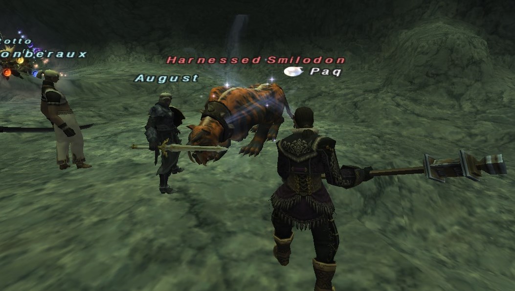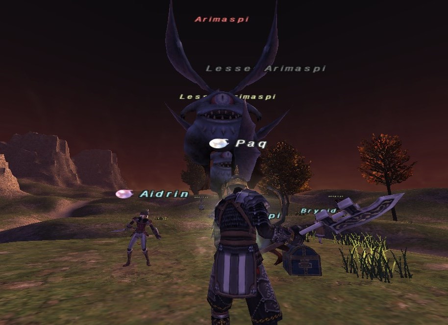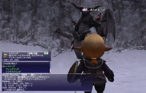 なお、中間NMは弱いので(昔は6人でも苦戦したことがあったような気がするが、IL119ならソロでも瞬殺できる)、本気の武器でWSを撃つとすぐ死んでしまう。そのため、Lv1~10くらいの武器を用意する必要がある。