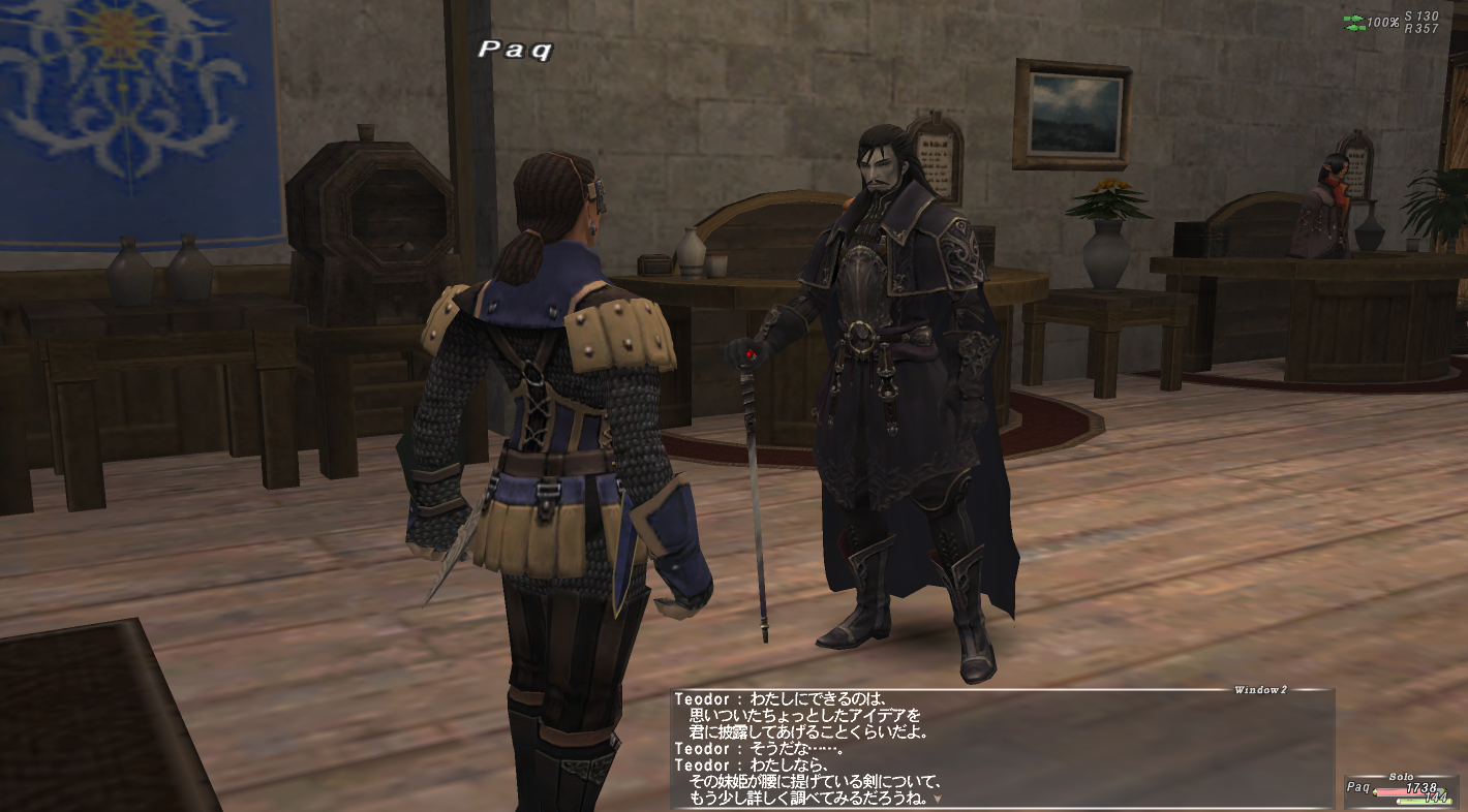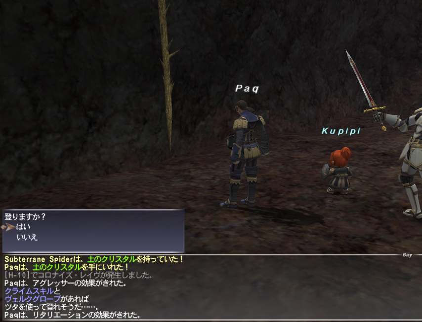 剣はエミネンスでLv77の剣をもらった。まだLv75なので装備できない。あと2レベル、Lv40のAF剣で頑張ることにする。