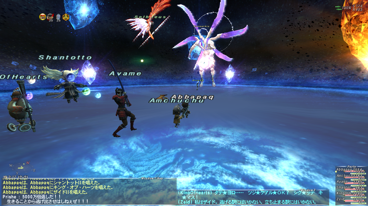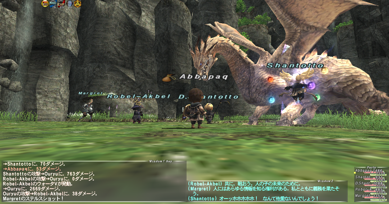 盾フェイスに3匹のタゲが集まったので、フェイスがピンチになったりしたが、運良くアークGKやシャントットなどが適当にタゲを取ってくれたし、Paqもフェイスの回復に回ったので、乗り切れた。