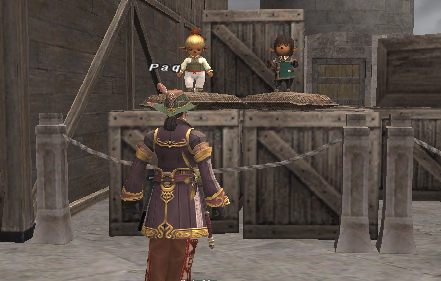 FF11用語辞典に「敵NPC2人のヘイトはマネキンに連動している」と書いてあったが、実際には、Paqがマネキンに殴りかかって戦闘開始すると、敵NPC2人は一直線にタルタルNPCに向かっていく。