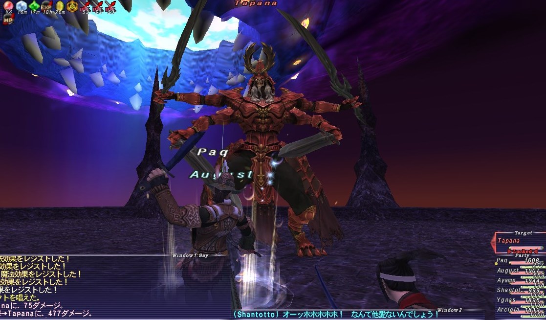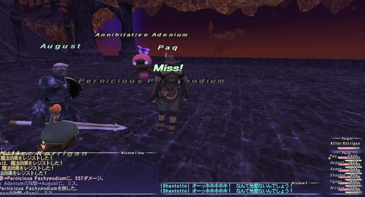 Kurewさんは侍バトルマスターになっていて、WSで12000ダメージを叩きだしていた。さすがだ。特に装備などを鍛えずにのほほんと過ごしてきたPaqは、1万を超えるダメージなど、特殊な状況でもない限り出せない。Abbaでは1度も出したことがない。
