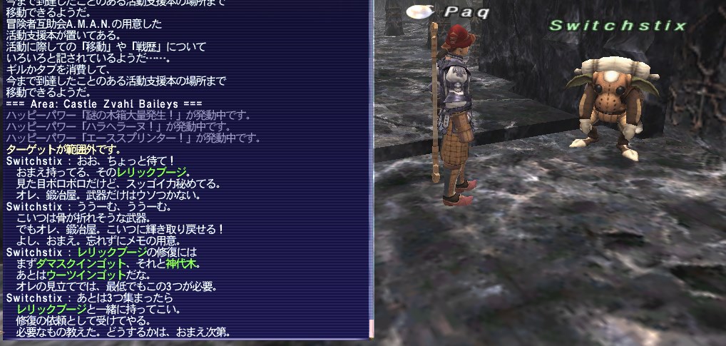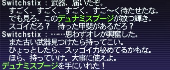 レリック両手斧の第3段階、デュナミスブージは出来たも同然だ。ズヴァール城外郭のゴブに話せば受け取れる状態になっている。