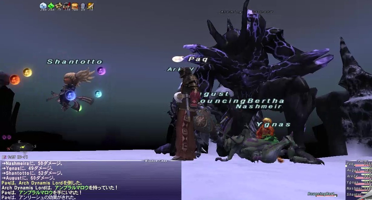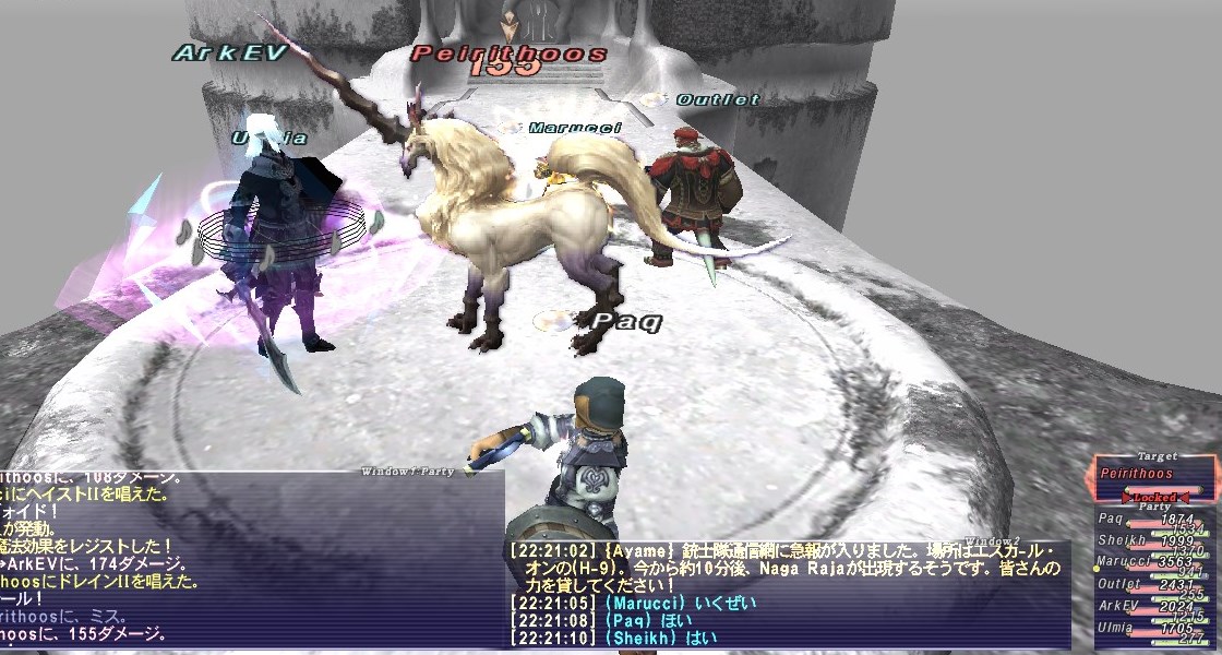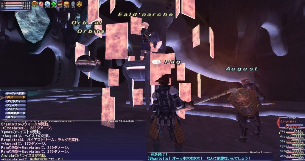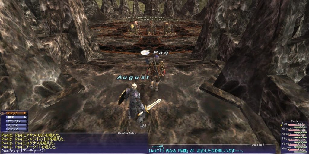 という事前情報を元に、Paq戦/踊、オーグスト、アヤメ(UC)、シャントットII、ユグナス、アークTTの構成で挑んだ。アークTT以外はいつも醴泉島でジョブポ稼ぎをしている構成だ。要は「まずは慣れた構成で試してみる」つもりだ。