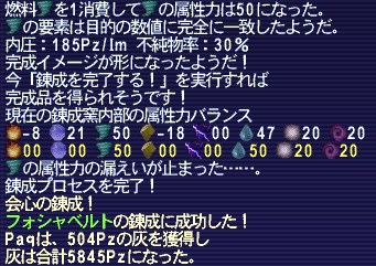しかし幸か不幸か、Abbaのエスカッションは既に最終段階に入った。現地で合成をする機会はぐっと少なくなった。つまり合成をするとしたら大抵はモグガーデンや調理ギルドで行う事になる。 蒸留水が足りなくなったらすぐに買える。