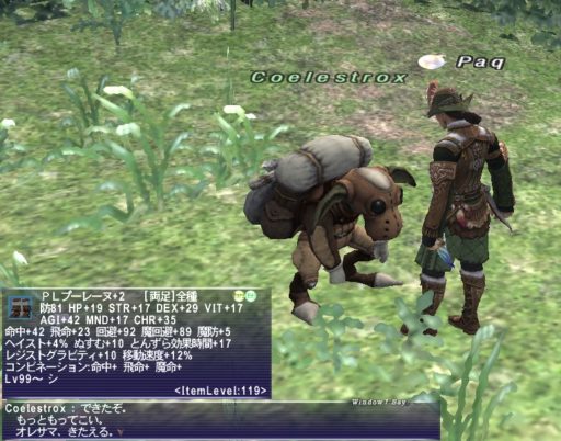 何ヶ月か前に導入された、マウント:レヴィデイス。Paqは取得済みだが、手順がかなり面倒なので、他のキャラは取っていなかった。