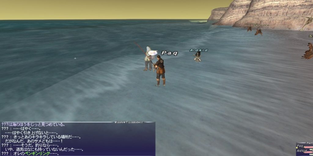 ※ モンスターが釣れるときは、台詞の最後が「!!」になるので、×ボタンを押してリリースすれば戦闘しないで済む。普段はそうしているのだが、今回は3分という制限がある。幸いモンスターは同時に1匹しか釣れないそうなので、倒さずに寝かせてキープしておけば2匹目のモンスターがかかることがなくなる。