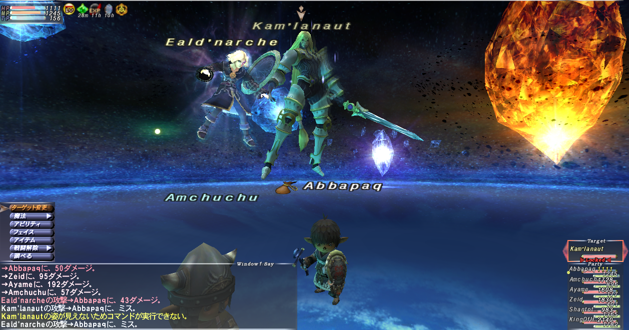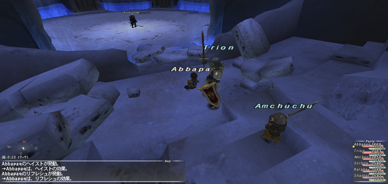 予想通り、ヒュム♀とガルカがアシェラに向かっていった。ヒュム♀にフラッシュを入れて殴りかかり、ヒュム♀がAbbaを殴ってきたのを確認して、ガルカに殴りかかった。