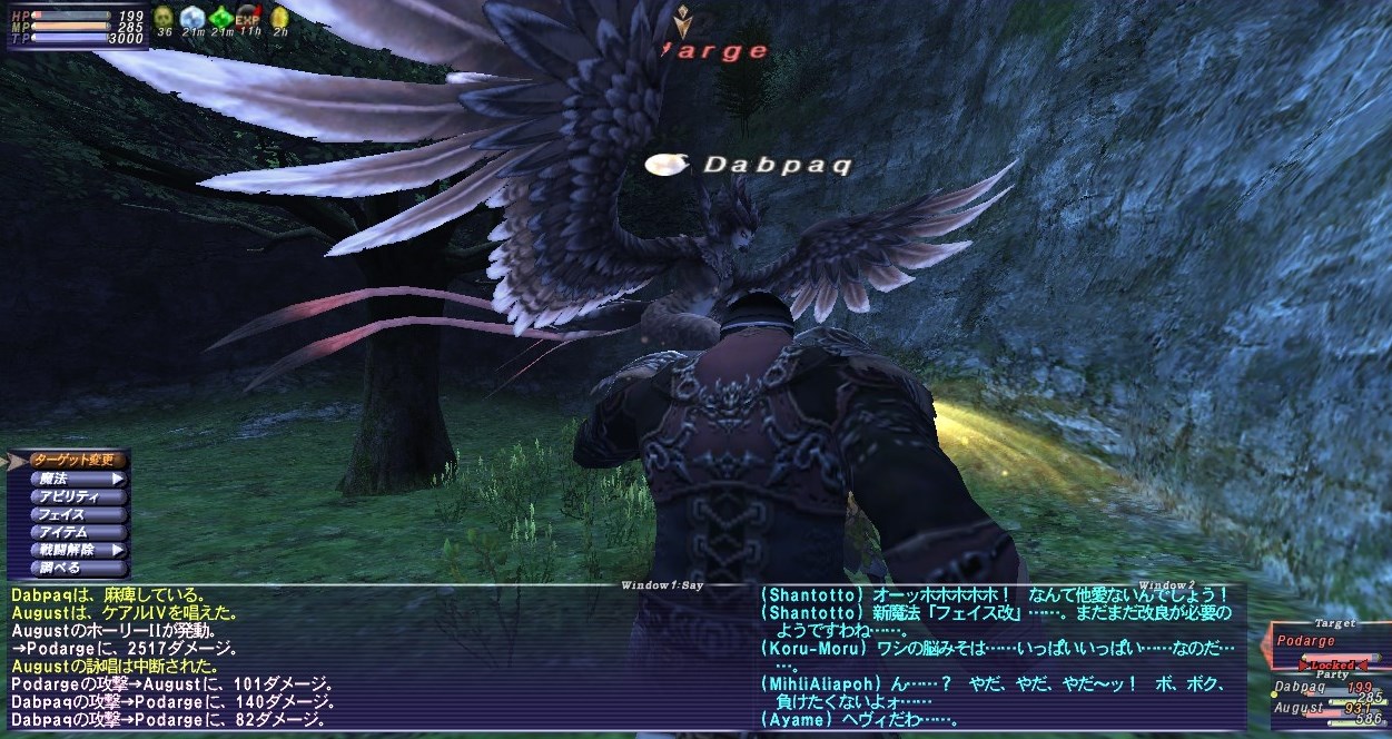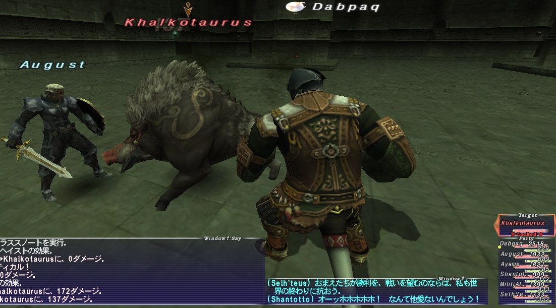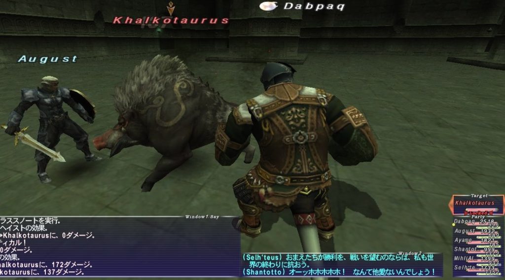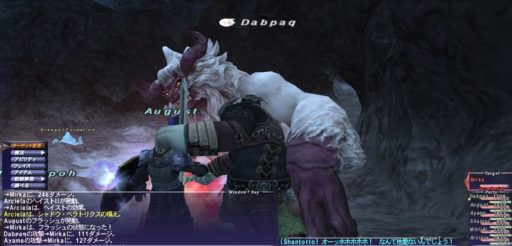 Kurewさんは侍バトルマスターになっていて、WSで12000ダメージを叩きだしていた。さすがだ。特に装備などを鍛えずにのほほんと過ごしてきたPaqは、1万を超えるダメージなど、特殊な状況でもない限り出せない。Abbaでは1度も出したことがない。