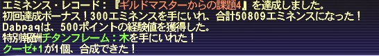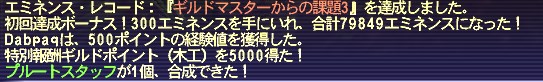 ダークスタッフのHQなので、簡単にはできない。NQはいくつ作ってもカウントされないので、何回合成したら達成できるかは予測できない。