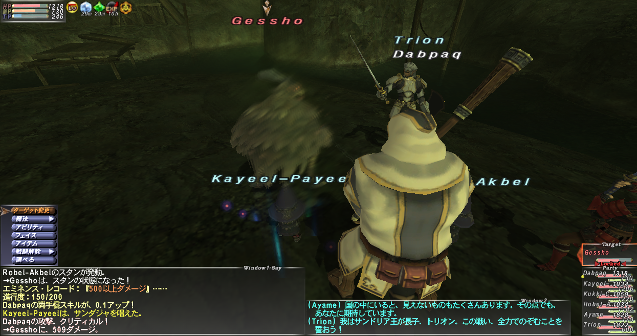Lv99ともなれば両手剣スキルは400を越えているものだが、Abba・Dabともに、エミネンスのスキルアップアイテムをがぶ飲みして、やっと250そこそこだ。
