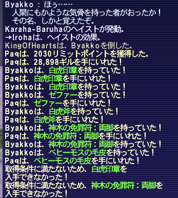 Paqはシ99で、AF両手をIL119まで鍛えてトレハン+3が付くので、Paqがベヒーモスと戦った方が、麝香牛肉が期待できる。
