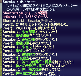 今回はゲットできなかったが、白虎佩楯は少し欲しかった。Lv75の装備なので過去のものだが、昔はあこがれた時期もあった。ドロップしてくれればマネキンに着せておくつもりだった。まぁ白虎佩楯のために再戦するかと聞かれれば、それほど欲しいものではない。