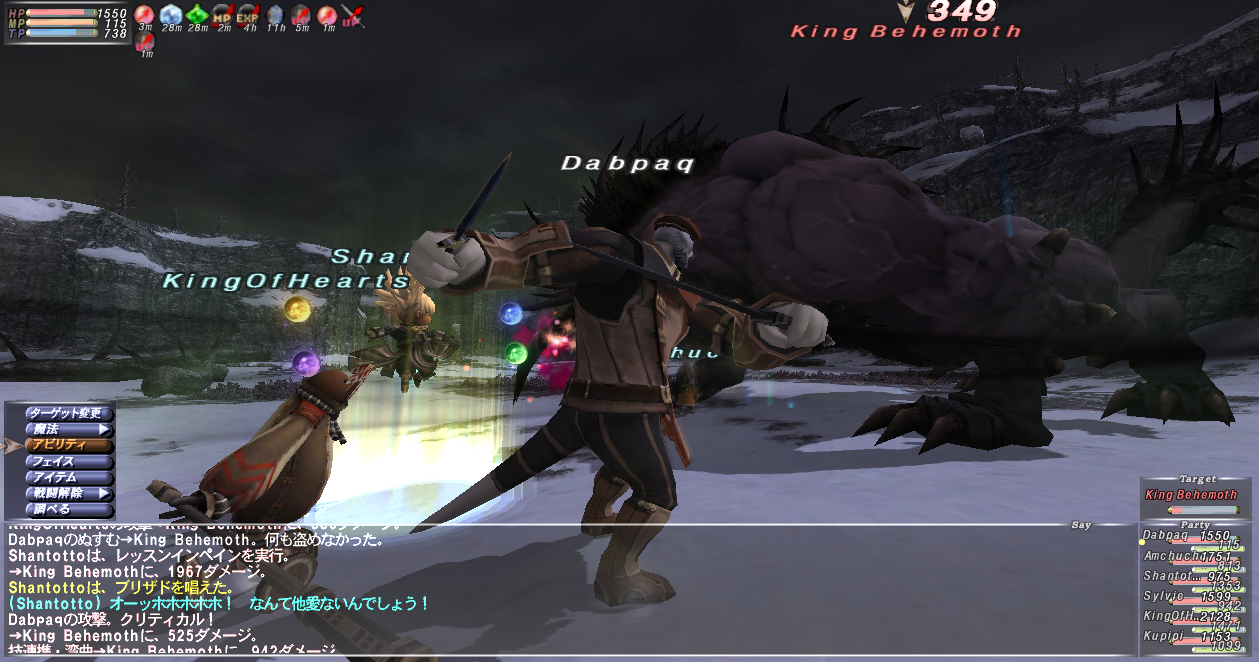 フェローのPimyはLvが低すぎてオミソ扱い。Dabがサポ白でケアルして、死なないように気を遣う。